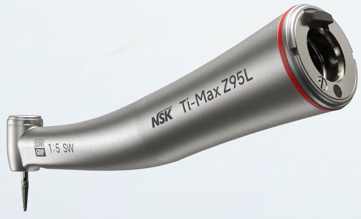 NSK Dental Winkelstücke mit einem roten Farbring übersetzen die Antriebsdrehzahl im Verhältnis 1 : 5 und 1 : 4,5 , d.h.: Die Arbeitsdrehzahl am rotierenden Instrument ist 5 respektive 4,5 mal höher als die Motordrehzahl. Sie werden rote Schnelllaufwinkelstücke auch (“Schnellläufer”) genannt.